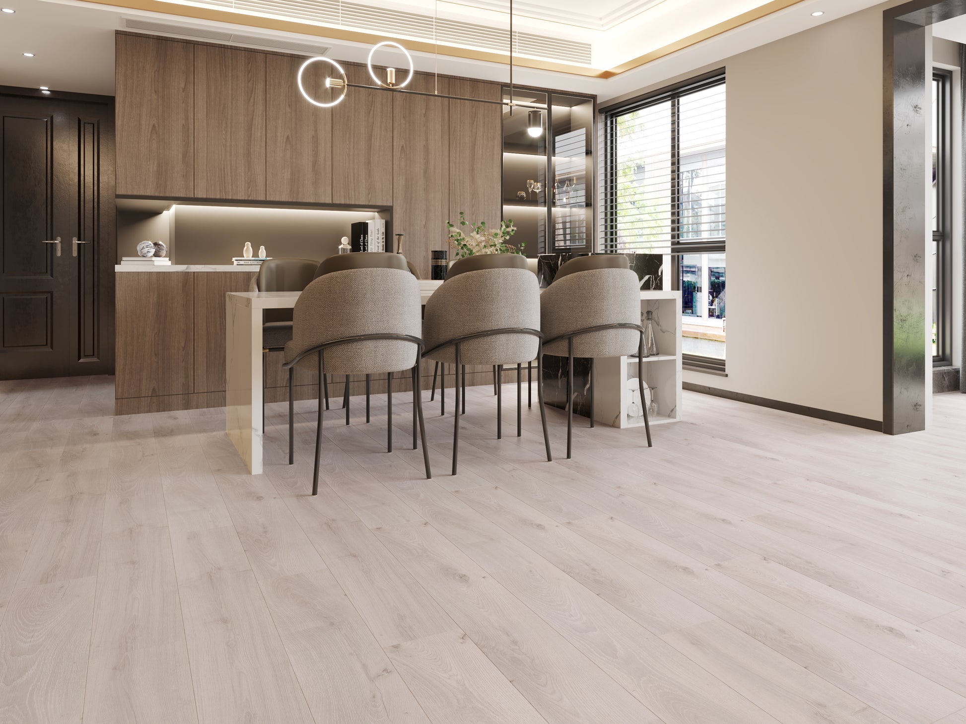 OZ series laminate is a stylish, high performing floor solution. It is easy to install with the clicking system. the 12.3mm thickness ensures stability when walking on the floor. the round edge prevent water from sipping into the gap and avoid any water dammage.