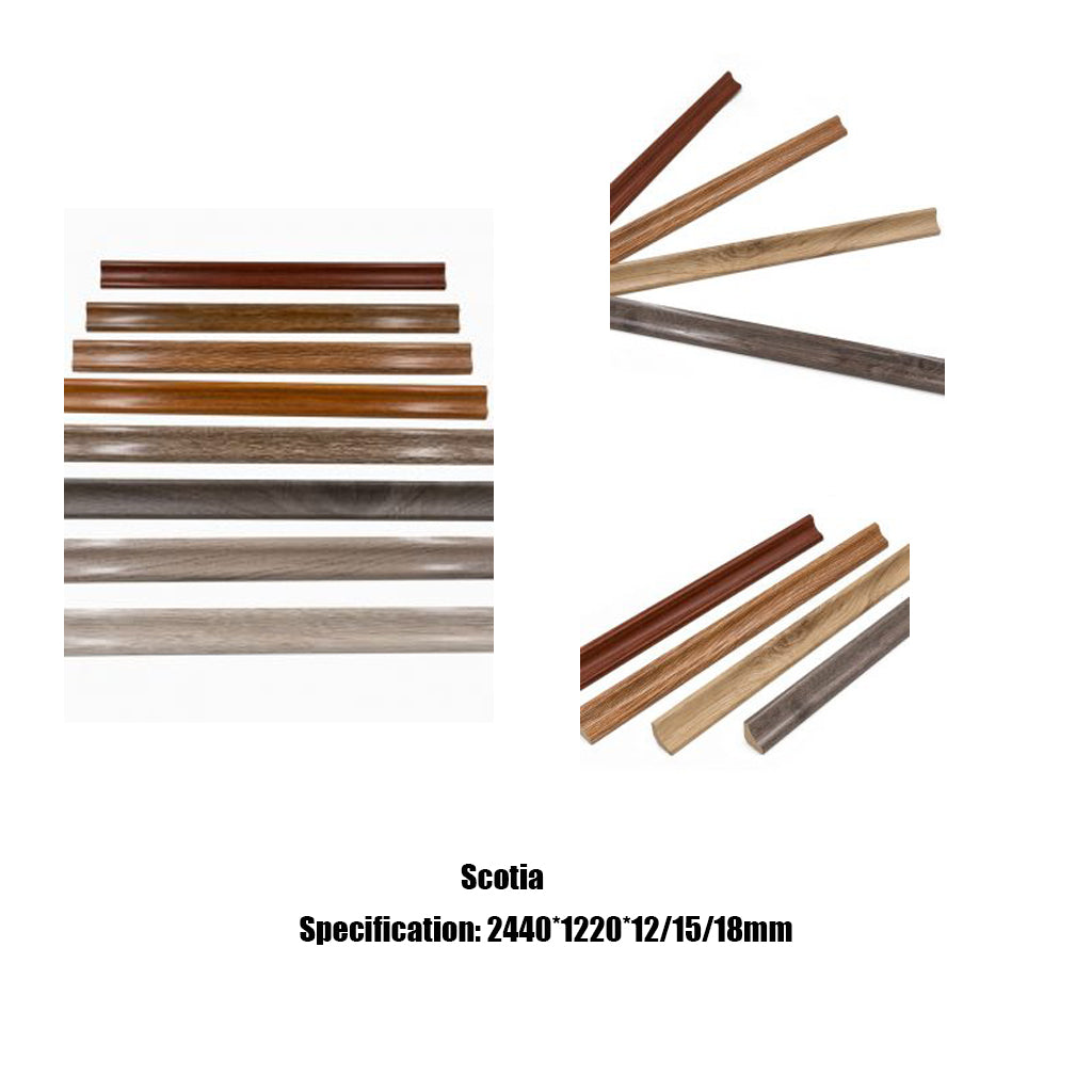Scotia: a decorative moulding used to cover the gap without removing the skirting. Scotia is fixed to the skirting board and over the top of the flooring around the perimeter of the wall.